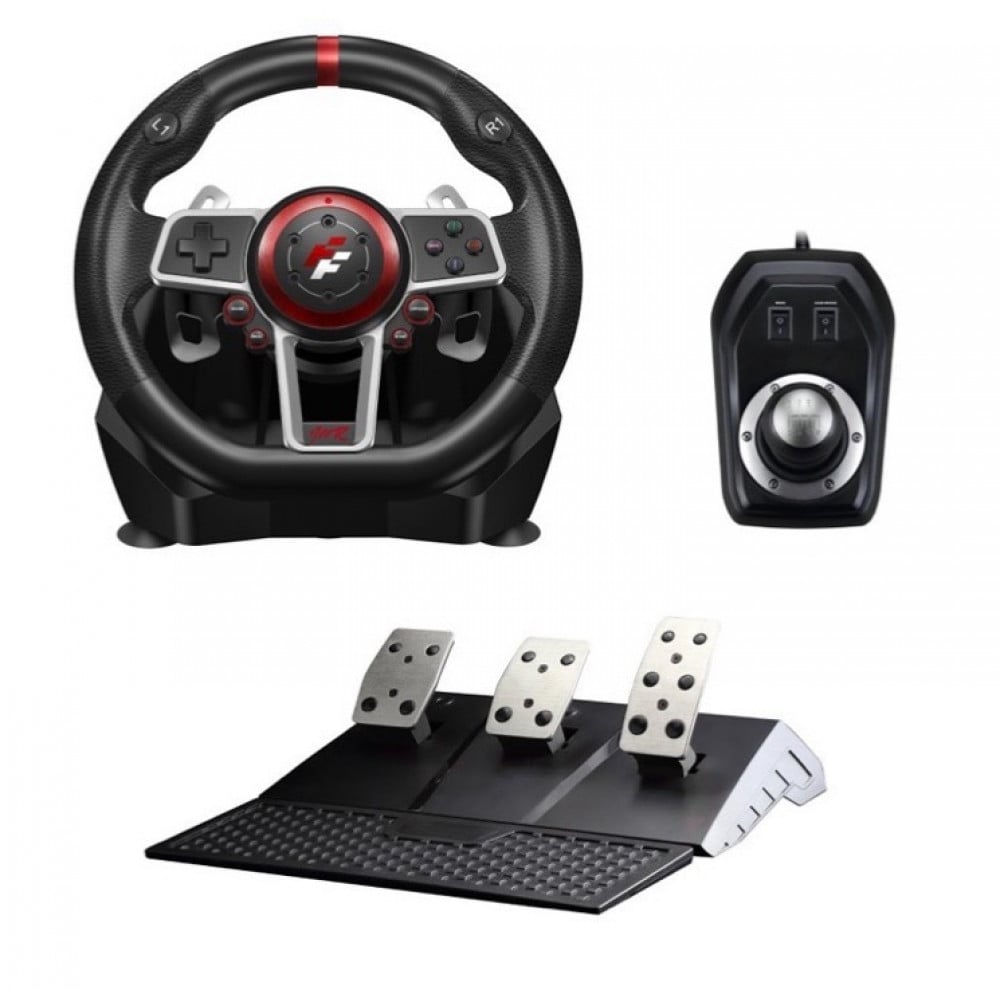 - قبضة مطلية بالمطاط 3 إعدادات حساسية قابلة للتعديل متاحة لعجلة القيادة 12 زر عمل بما في ذلك الزعانف اليسرى واليمنى خلف عجلة القيادة، وردية التروس، ودواسات الغاز والفرامل.