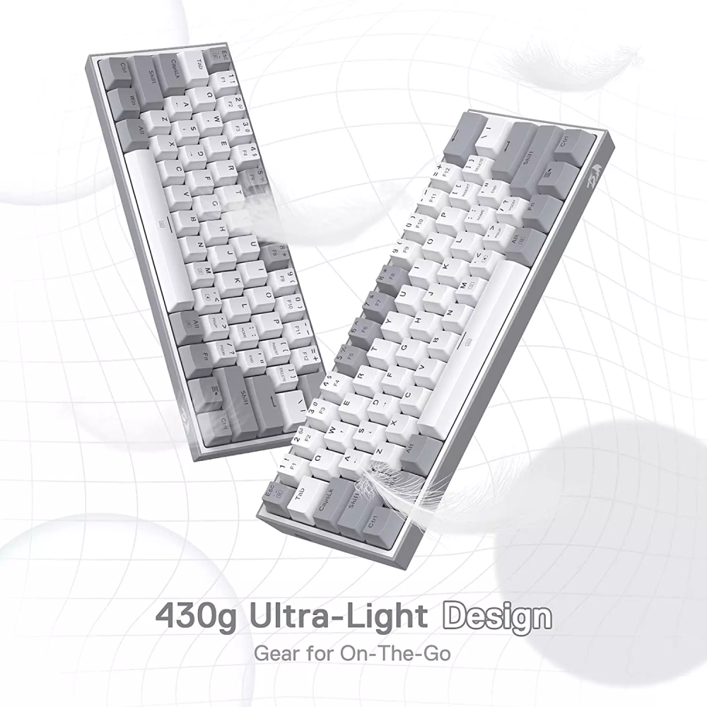 لوحة المفاتيح السلكية الجديدة ذات التصميم بنسبة 60٪ من Redragon بأسلوب منعش مع عرض اقتصادي لا يحتاج إلى تفكير. 61 مفتاحا مدمجا مع أغطية مفاتيح محددة ، مخصصة للاعبين FPS والعمل الفعال.